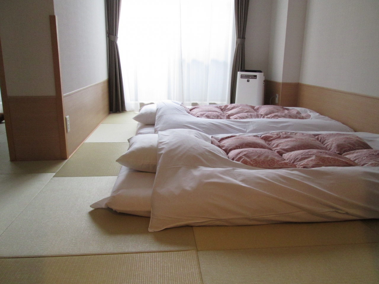 部屋は布団も敷いてくれてありよかったのですが、隣が居間、入口近くにトイレ、離れて洗面所と使い慣れないタイプで戸惑いましたが、夜もとても静かです。
