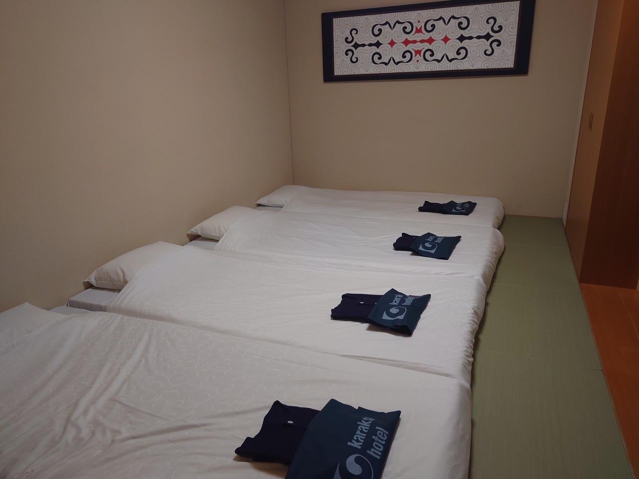しかし、布団を敷いたらいっぱいで荷物を広げるスペースも、くつろぐスペースもないのが残念