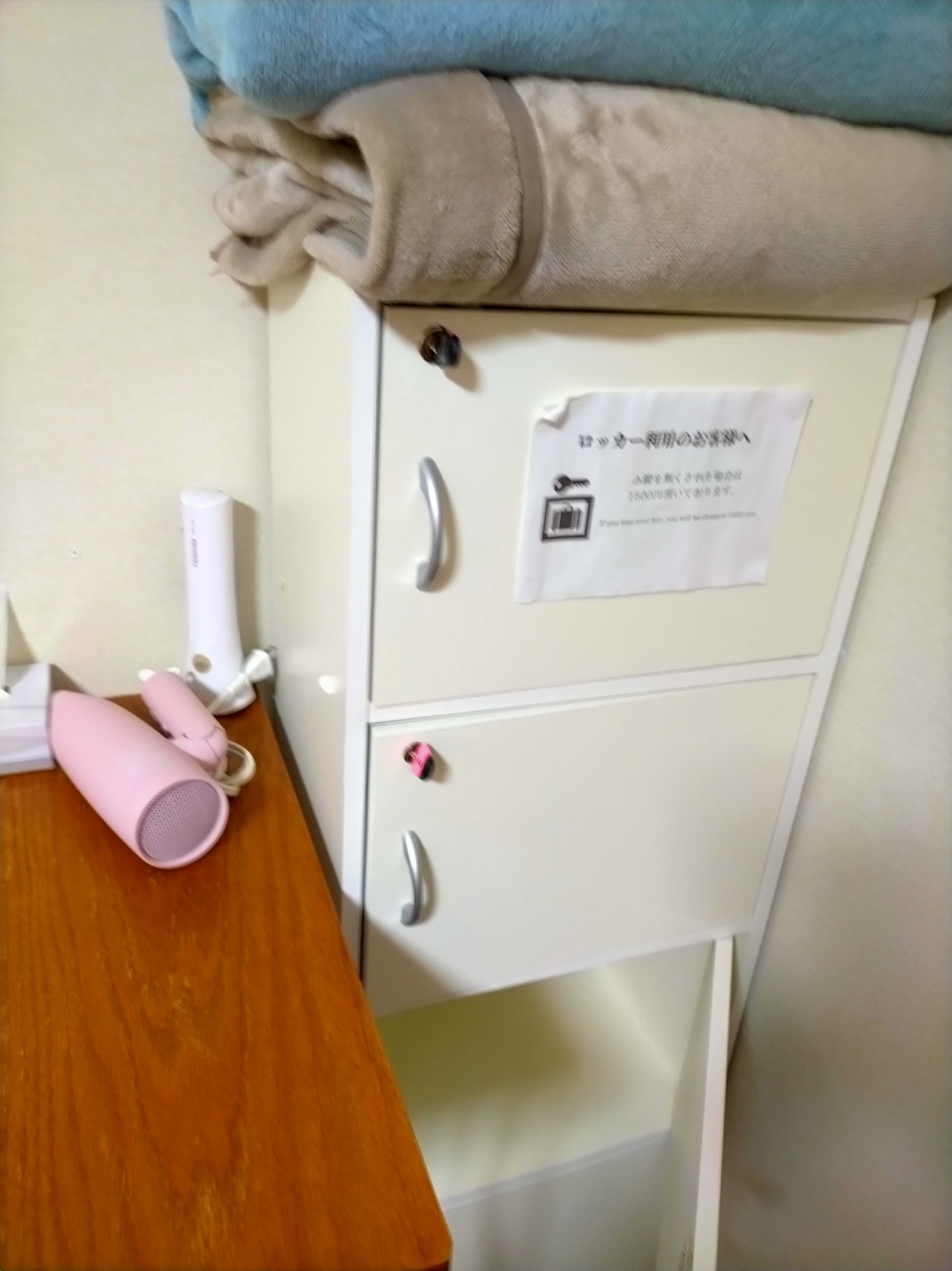 お部屋は女性専用の部屋を予約。この日は貸切状態。部屋には暗証番号を入力して出入りするシステムです。