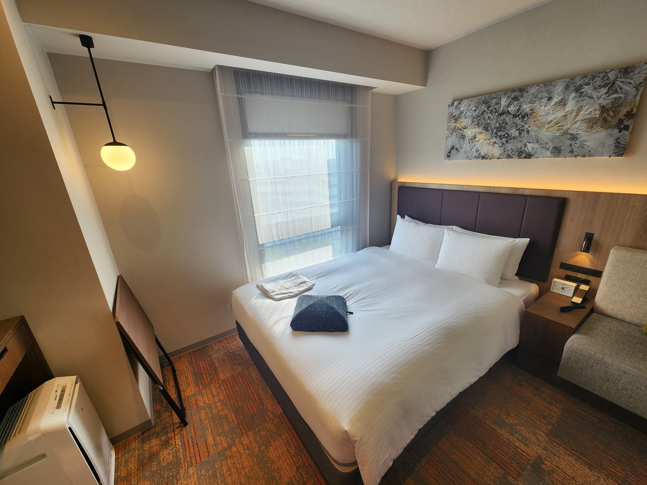金沢駅兼六園側出口から徒歩10分、近江町市場近くにあるビジネスホテルです。2連泊ですがギリギリ直前に予約したため満室に近く、違うタイプの客室を1泊ずつ予約。その旨をコメント欄に残したら、同じ客室(価格が高いほう)2連泊できるよう配慮してくれました。それだけで感動なのに、お酒1杯無料、入浴剤も無料、1人宿泊なのにタオルは2セット、水のベットボトルも2本ととにかく嬉しいサービスだらけ。客室はリラックスダブル、トイレお風呂別々、2種類のマッサージ機がありました。いたれりつくせりで、サービスはビジホの枠を越えてます。また泊まりたいと思える良いホテルです。6月24日~2泊
