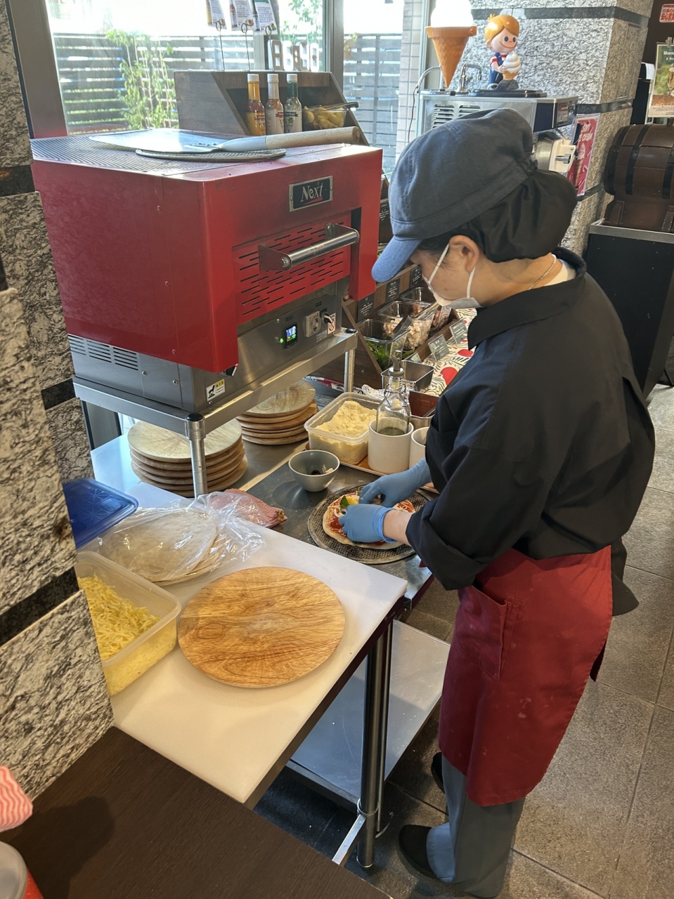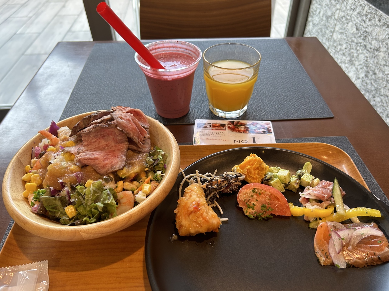 こちらのイタリアン朝食は、自分でトッピングを選ぶピザ、チョップドサラダ、ローストビーフ、スムージーが主力。