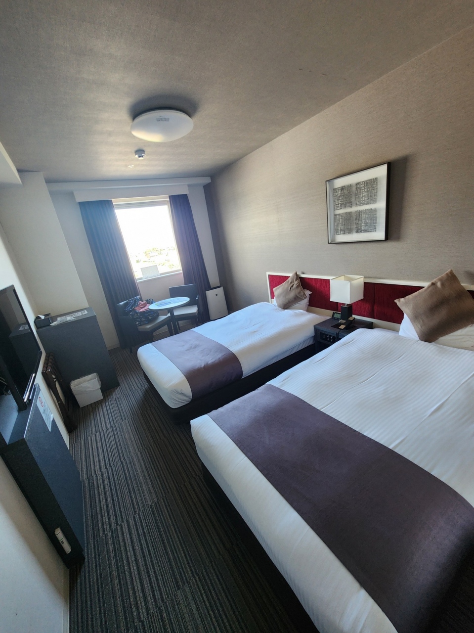 北海道新幹線の終着駅である新函館北斗駅前にあるビジネスホテルです。部屋は最低でも20平米あり広々しています。アメニティやパジャマは2階のロビーから自分で持っていくスタイルです。2階には大浴場&露天風呂があり、基礎化粧品は雪肌精。昨今、函館駅前のホテル群は高騰しており日本人には高過ぎますが、こちらの新函館北斗駅前のホテルは曜日はよっては安く泊まれるのでオススメです。7月1日から2泊。