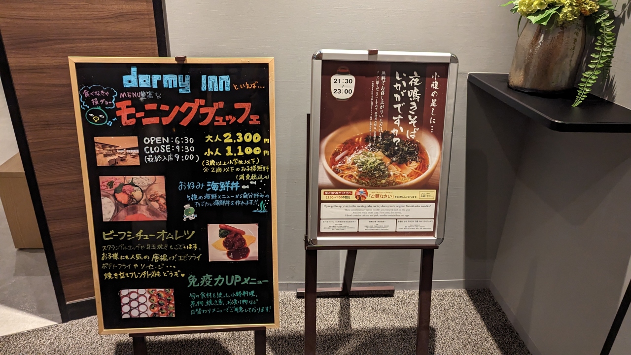 dormy innの売りは大浴場以外にも朝食や夜鳴きそばも人気のようです。