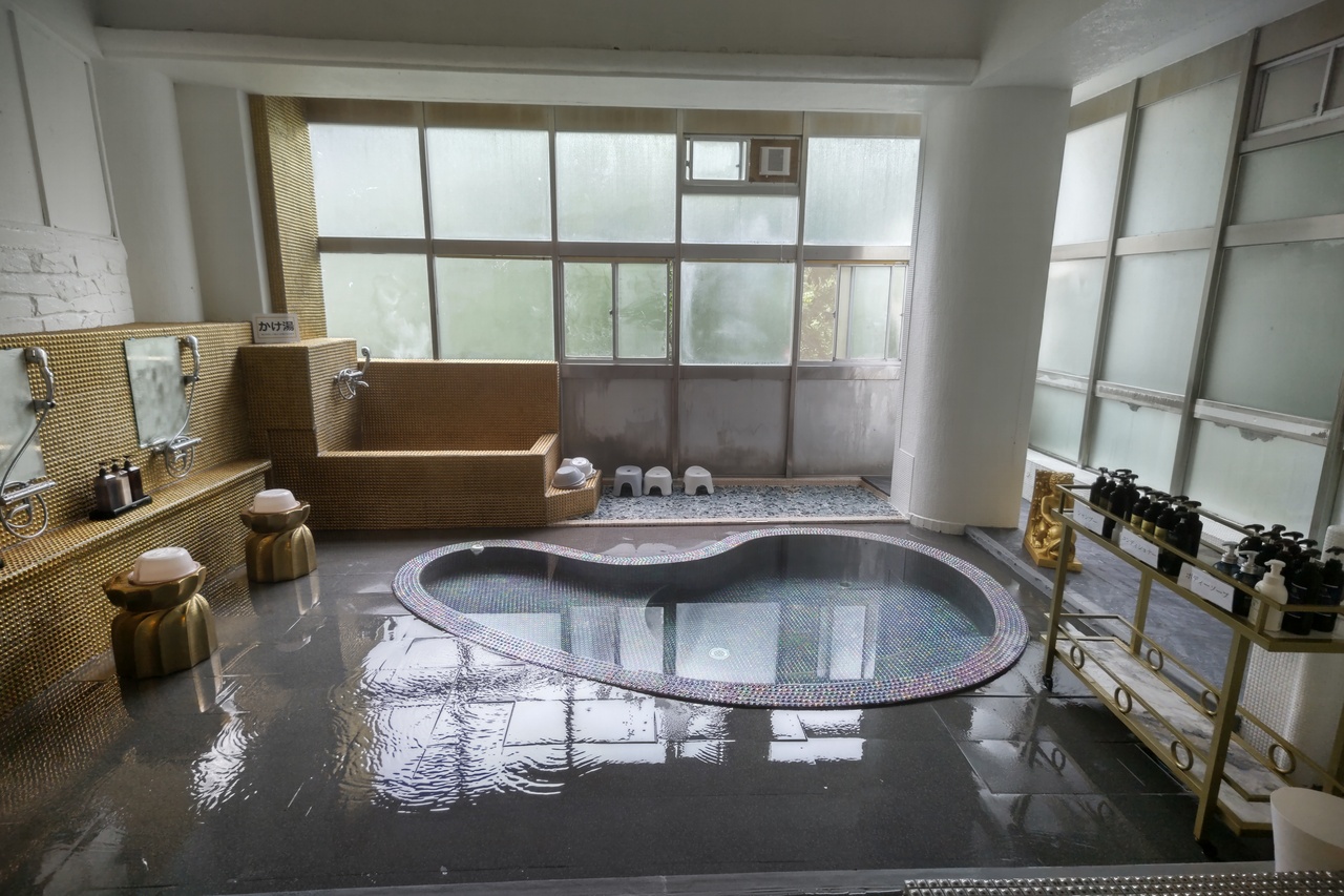 温泉は最下の階にあり、水上温泉にしては珍しい源泉掛け流し。雰囲気は昔の藤屋ホテル時代のものがベースになっているのですが、金ピカタイル化などのリニューアルの手は入っています。1段高い場所にはジャグジーもあり、こちらも温泉のようで気持ち良いです。温泉は温めでクセもなく、何度も入っても気持ちいい良いお湯でした。又、風呂場の出口にはドリンクバーのマシンが置いてあり、こちらは滞在中無料で利用可能なのが嬉しいです。(ロビーにもあります)部屋の冷蔵庫にも無料ドリンクが沢山入っているので、ここに泊まる時はドリンクを買っていく必要はあまりなさそう。