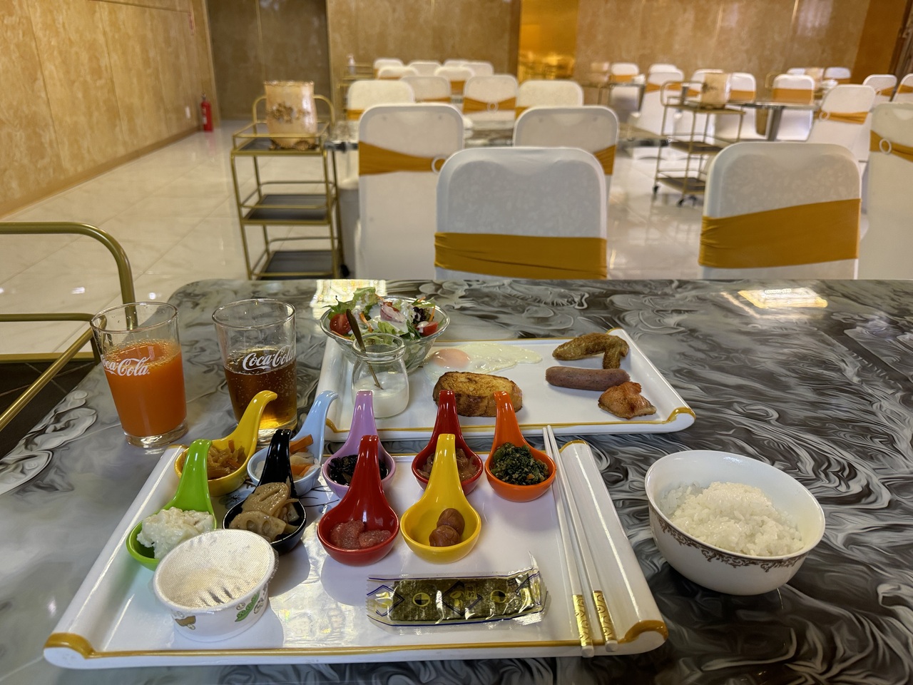 食事は基本バイキングなのですが、宿泊人数により変わるそう。今回はまさかの私1人!での宿泊だった為夕食はオーダーバイキング、朝食は小鉢メインの定食でした。