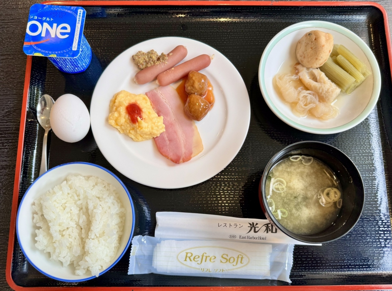 和洋食の朝食バイキングは料理の種類も多く珍しいおでんもあって、美味しく頂きました