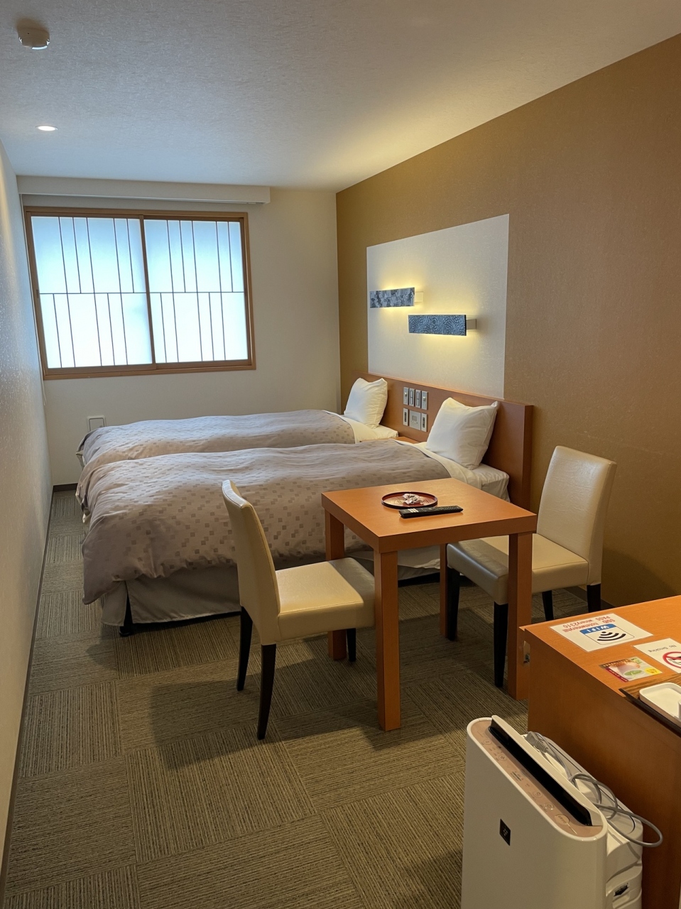 お部屋は、3階ツイン(トイレ、洗面、UBあり)でした。空の冷蔵庫もあります。