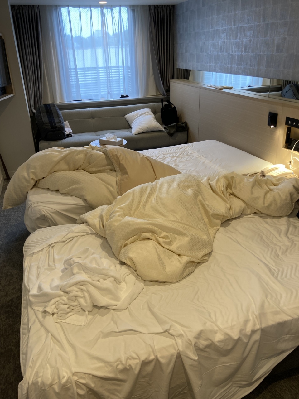 コンパクトツインなのにソファーがあり、6:30始発の無料空港送迎バスも利用しました。
