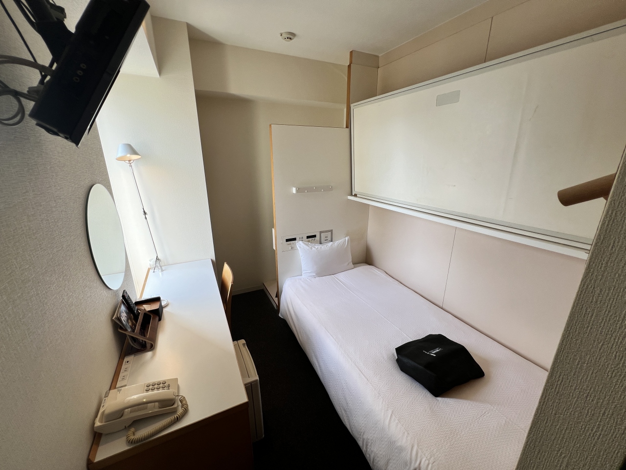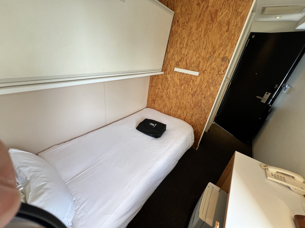 部屋はすごく狭いです。ベッドは今までで一番細い。デザイナーズと書いてありますが、そんな感じではないです。滞在感はそんなに良くないですね。