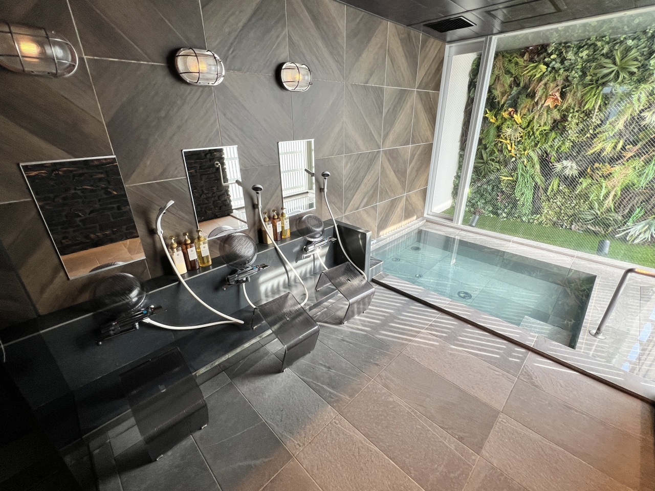 最上階に大浴場があって、男女入れ替え制。すごく小さいですが、一人だったので、景色を見ながらゆっくり浸かれました。カランは3か所。