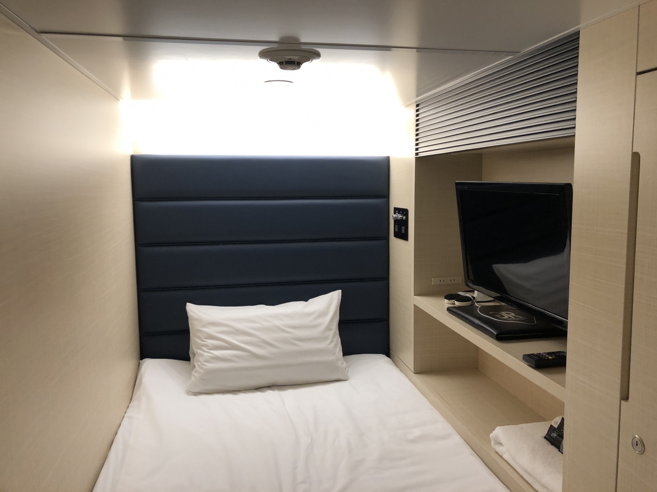予約を取るのが遅かったのでシングルルームは満室、カプセルを選択。