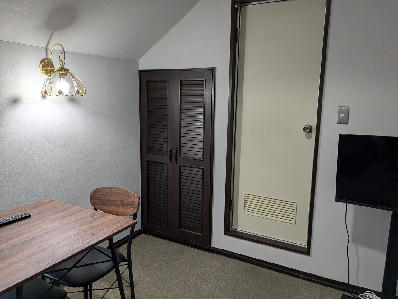 ラージツインには食卓と椅子あって、テイクアウトしたものもゆっくり飲食可能