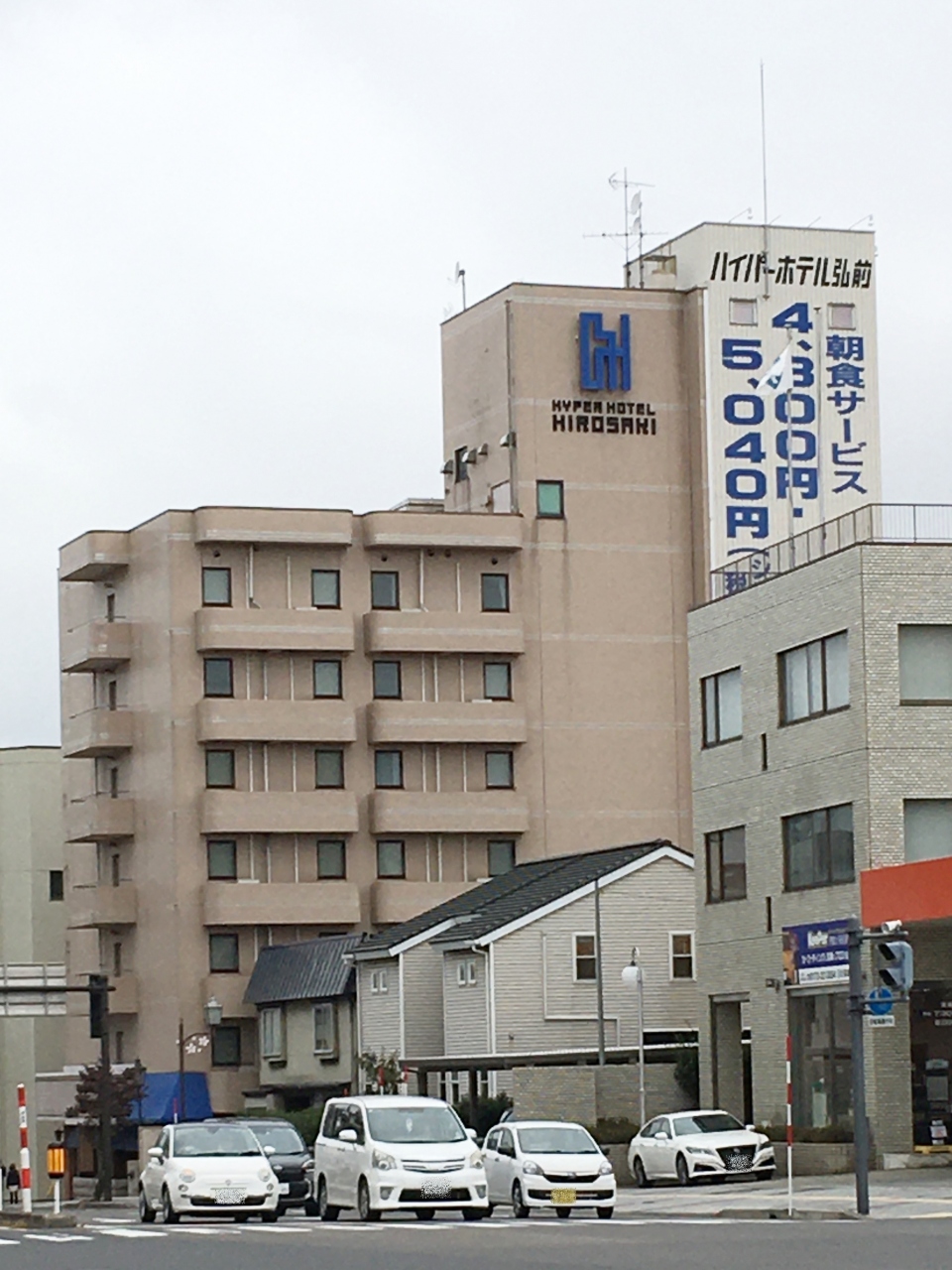 このホテルは、弘前駅と弘前公園の中間にあるビジネスホテル。部屋は広くて清潔感があり、洗面台が独立しているのが便利。朝食は無料で和食中心のバイキングで、手作りの品が美味しいです。DVD、漫画本などの貸し出しもあるようだ。料金が安い分、設備は古くて遮音性など多少気になる点もあった。