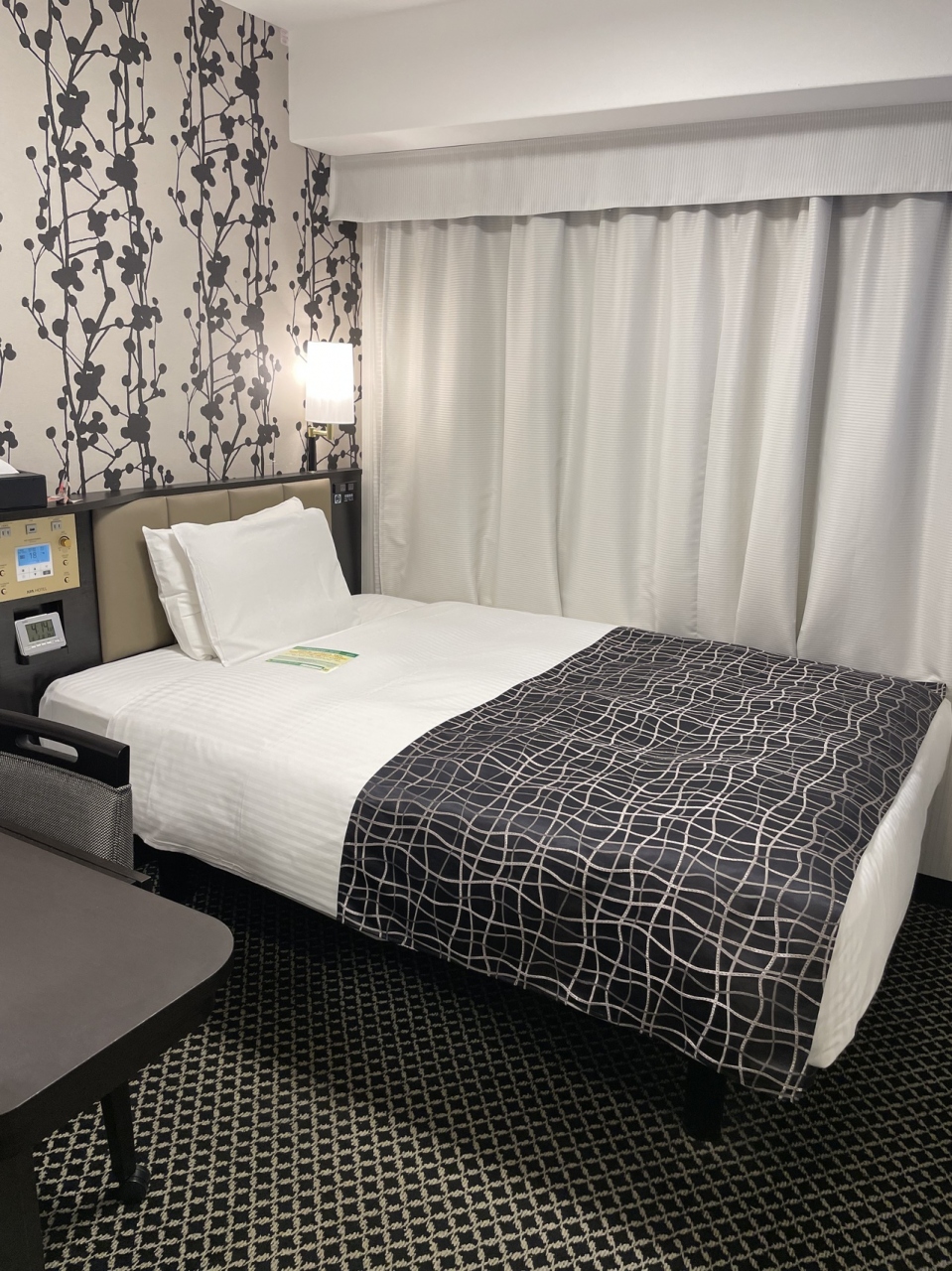 お部屋は、9階シングル15平米(ベッド1台120cm、バスルーム、トイレ、洗面あり)でした。