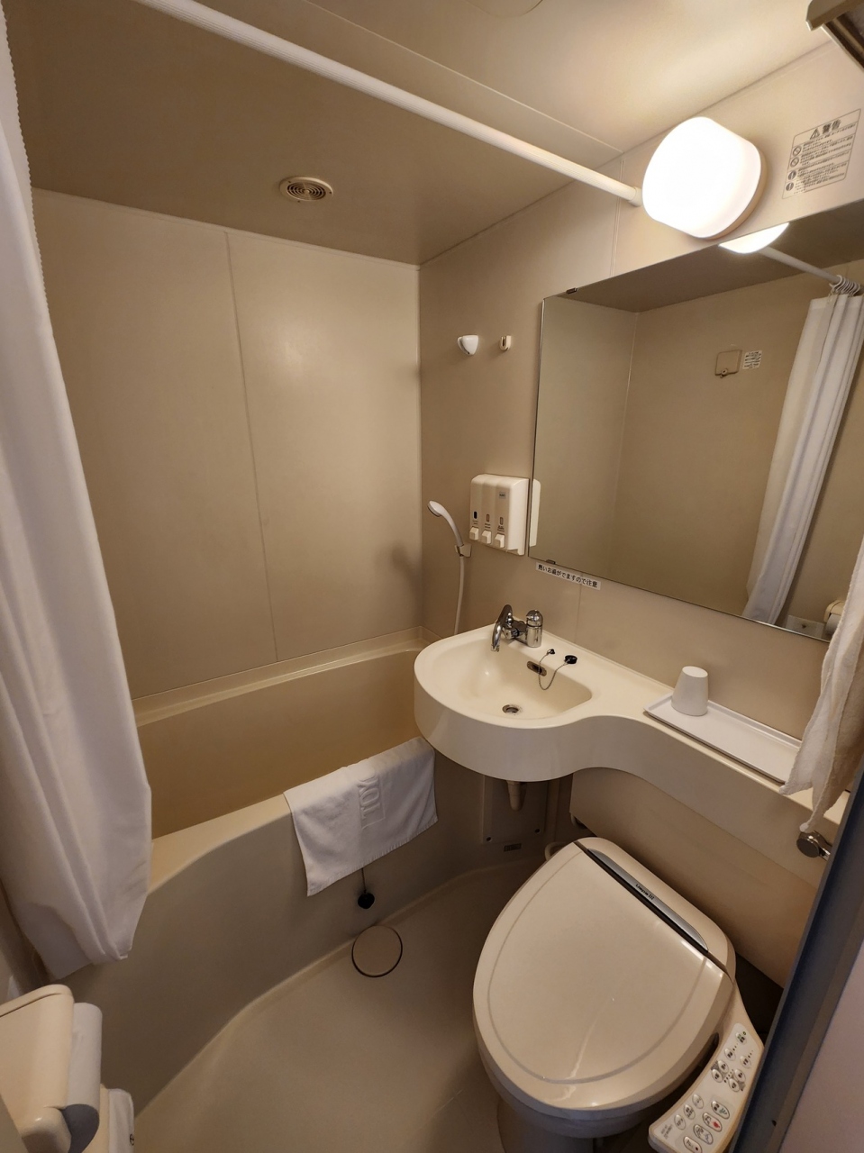JR熱海駅から徒歩5分、東海道線の電車からも見えるビジネスホテルです。今回は熱海の海上花火の日に宿泊しました。花火の日はホテルも旅館も価格が2倍に上がるのが一般的なので、こちらは比較的、良心的な価格だと思います。部屋はシンプルでアメニティは1階からもってくるスタイル。寝るだけなら十分ですが、布団カバーが雑巾臭くて参りました。今回の部屋は2階で、1機しかない激込みのエレベーターを使わずに非常階段で行き来したくても階段が中にない。(逃げるための非常用外階段のみ)部屋の鏡にライトがない。きっとビジネスの男性には人気のビジホなんでしょうが、毎回東横インに泊まるたび、大浴場があるわけでもなく特徴がないなぁと思います。チェックインが16時というのも遅すぎます。無料の朝食は有難いし、カレー美味しいです。8月8日熱海海上花火