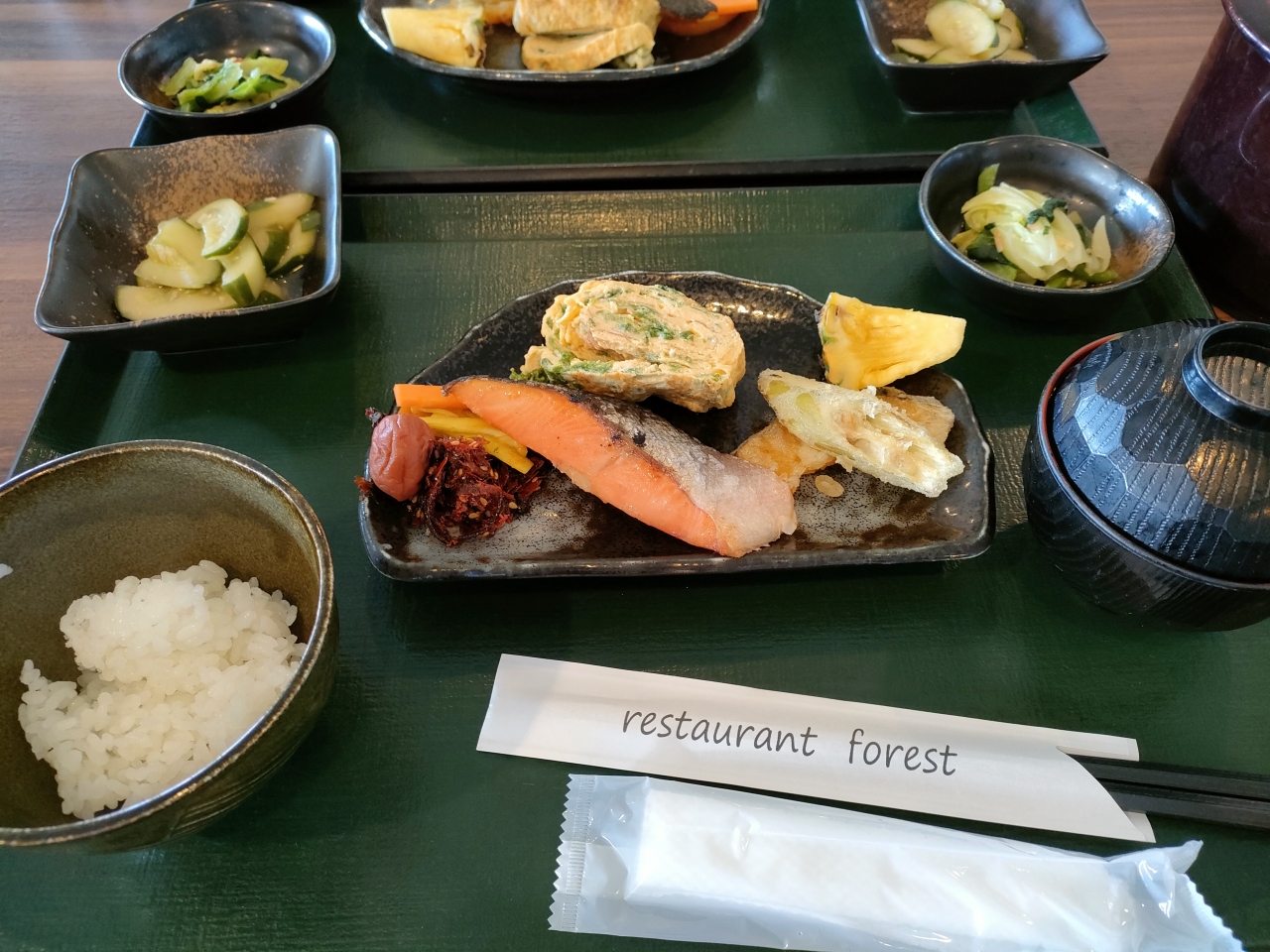 朝食は和食か洋食を選べ、和食は漬物や鮭、具沢山の卵焼き、天ぷら、味噌汁等と手作り感のある奄美の家庭の味を堪能できました。
