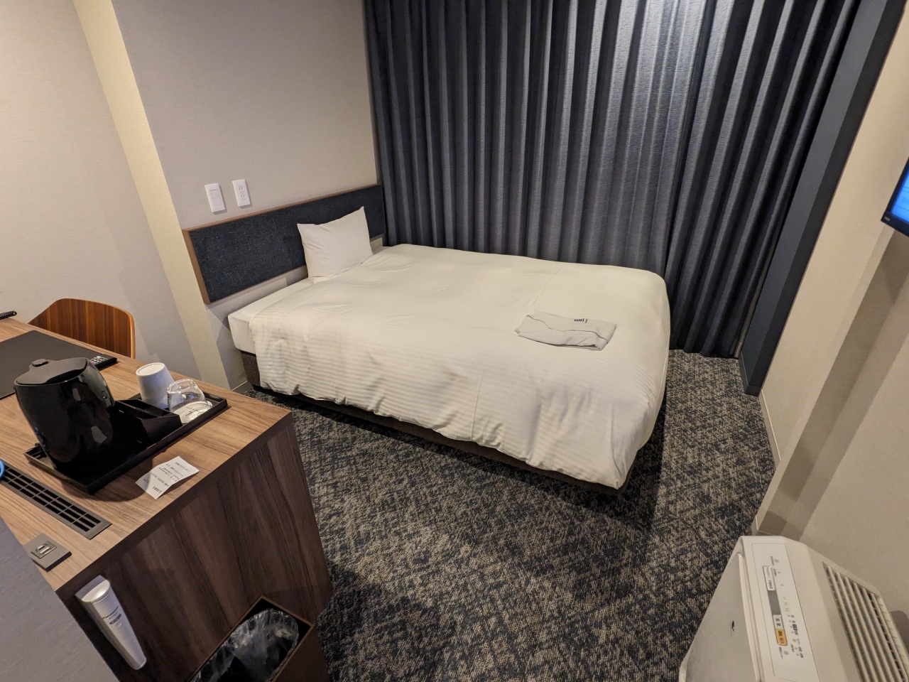 1泊5千円強と、昨今の状況からするととてもオトクなレートで出ていたので思わずポチりました。およそ1年ぶり2回めの宿泊になります。住宅街真っ只中にあるので結構駅からわかりずらいですが、なれると抜け道なんかもわかってきたりします。非常に綺麗で快適なホテルですよ。