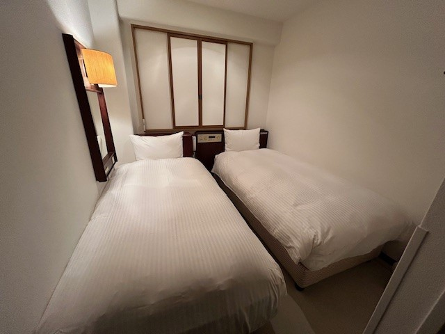お値段が安かったので、予想通り部屋はシングルの部屋にベッドを無理やり入れてツインにした感じの激狭部屋でしたが、寝るだけなので特に問題なし。