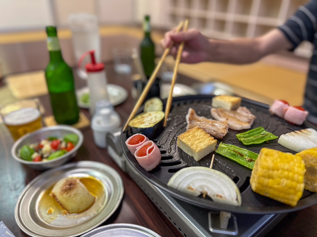 食事は別料金。夕食の淡路鶏焼きセットを電話で注文しました。さすがの高食料自給率の淡路島にふさわしくすべて地のもの、ボリューミーで食べきれませんでした。周りは何もないのでお酒を飲む方は持って行った方がいいです。食事の持ち込みは禁止のようです。