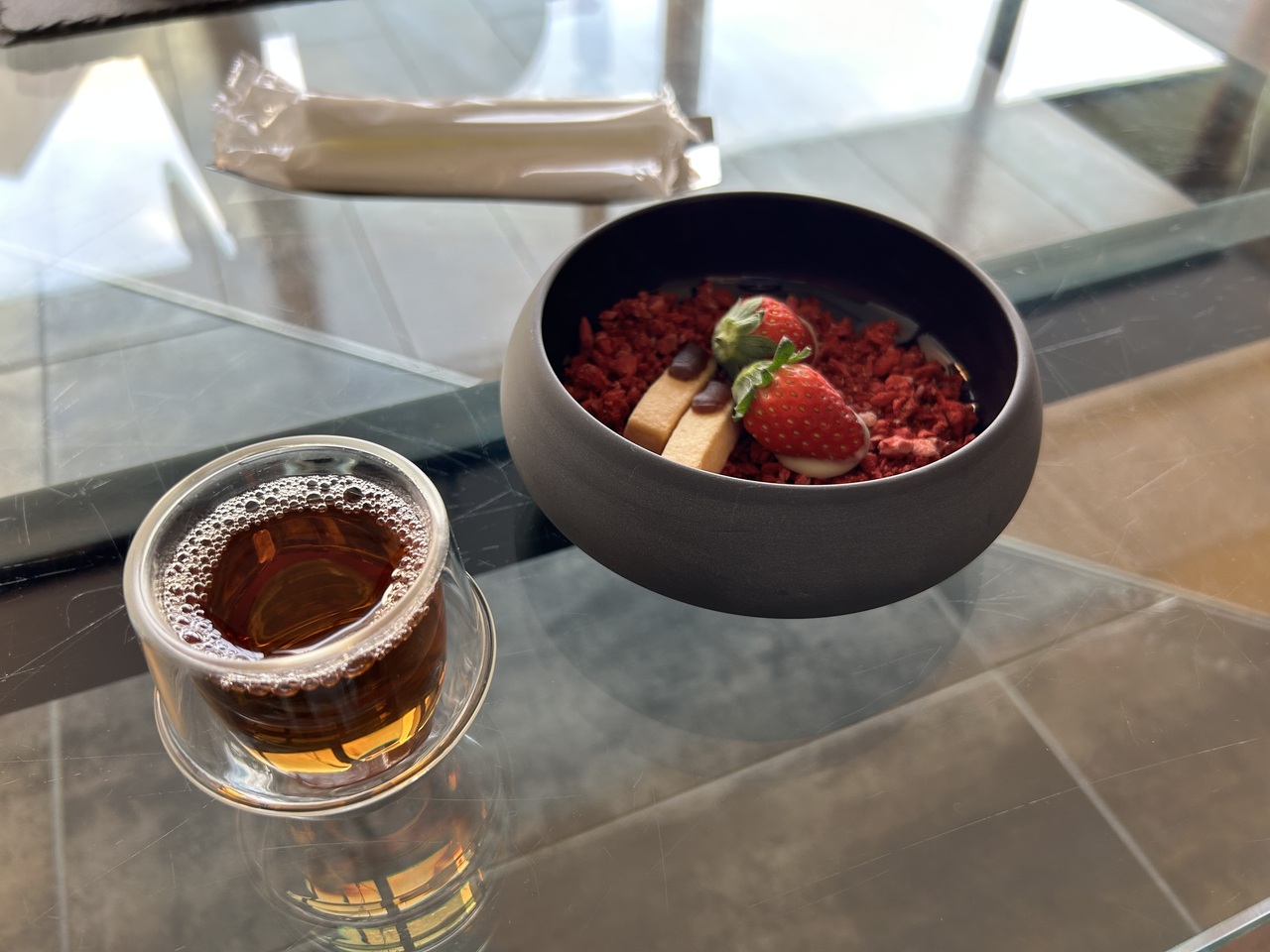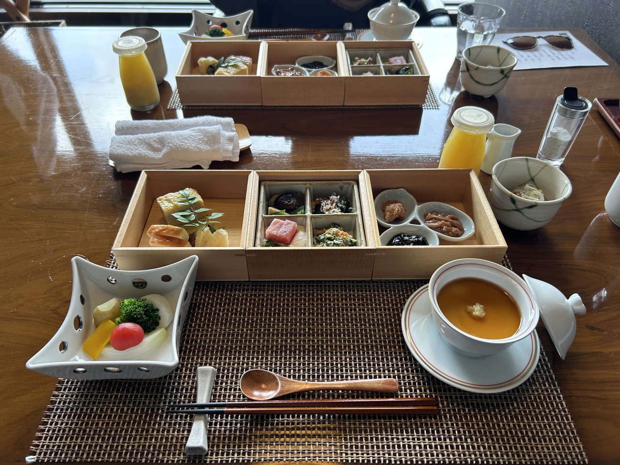 食事は半個室で、チェックイン時と、お部屋にもスイーツが用意させていて、特別感は味わえます。
