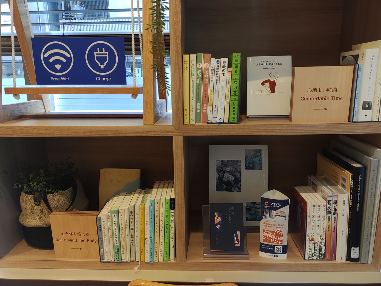 ライブラリーカフェが充実しています。明かりも明るく、本が読みやすかったです。今回は、【まいにちをよくする500の言葉】の本が気に入り、自分に言い聞かせながら熟読しました。何度も利用しているホテルです。お茶の種類も増えて、より味わい深くなりました。