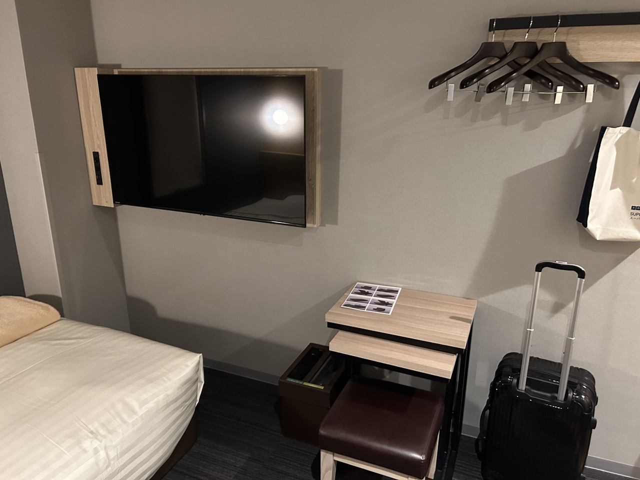 部屋はテーブルが小さめでホテル内PC作業には明るさ含め不向きに感じる。