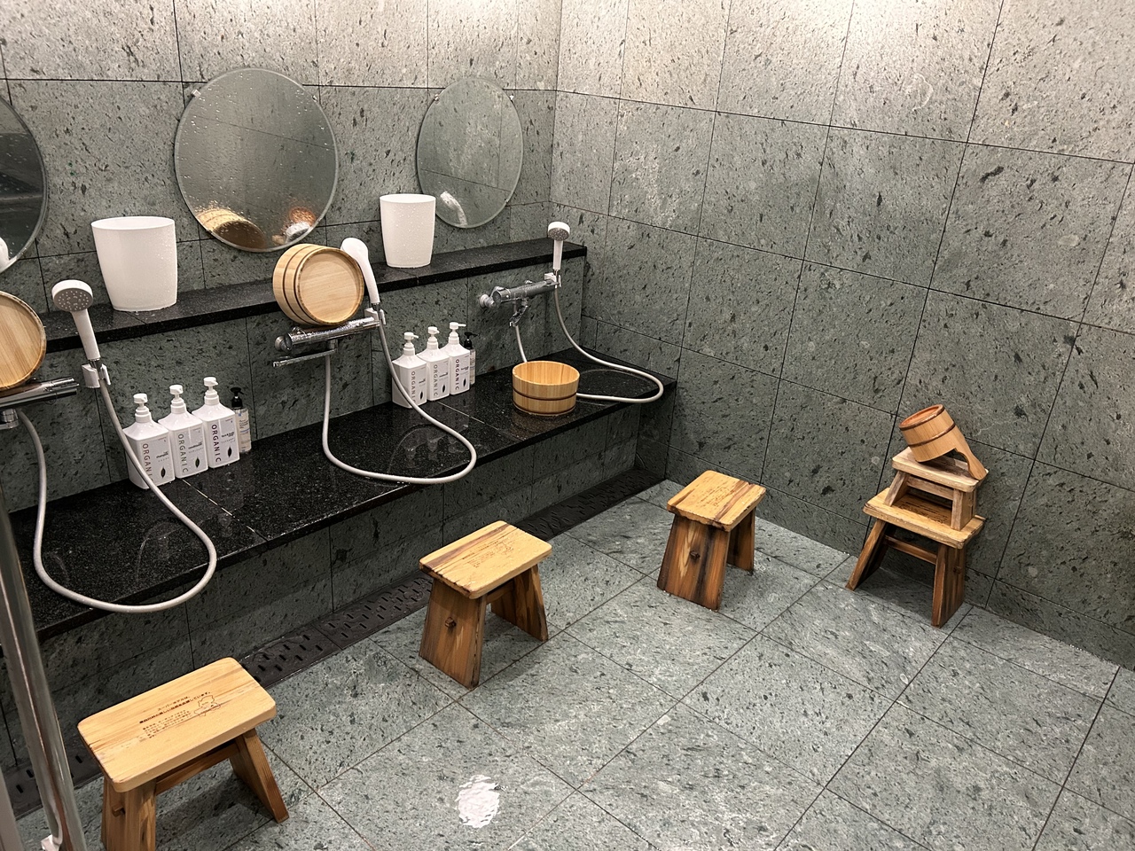 大浴場は洗い場3つとコンパクトで男女入替制。