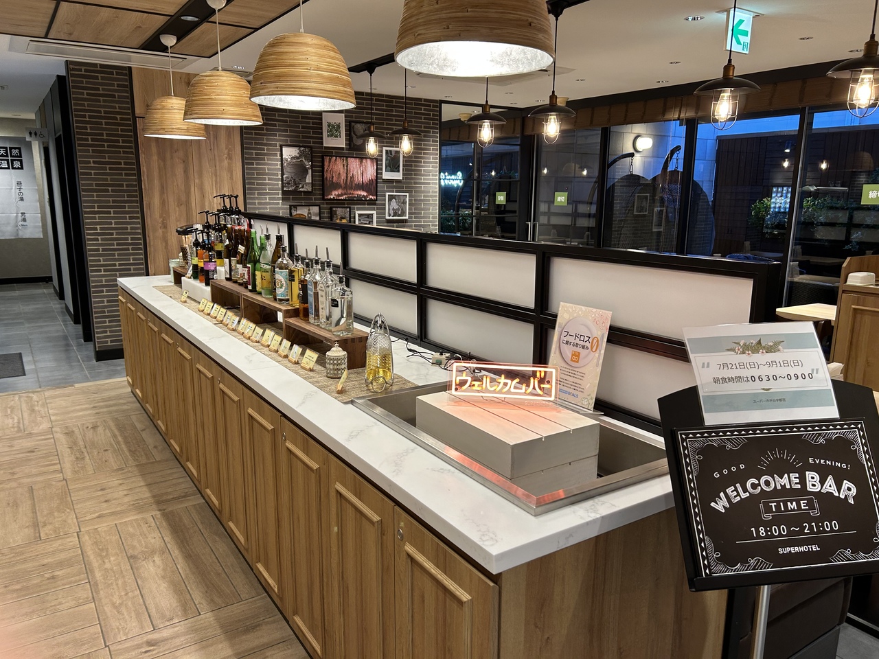 18-21時はアルコールバーがあり、他のスーパーホテルに比べてもお酒の種類が豊富。