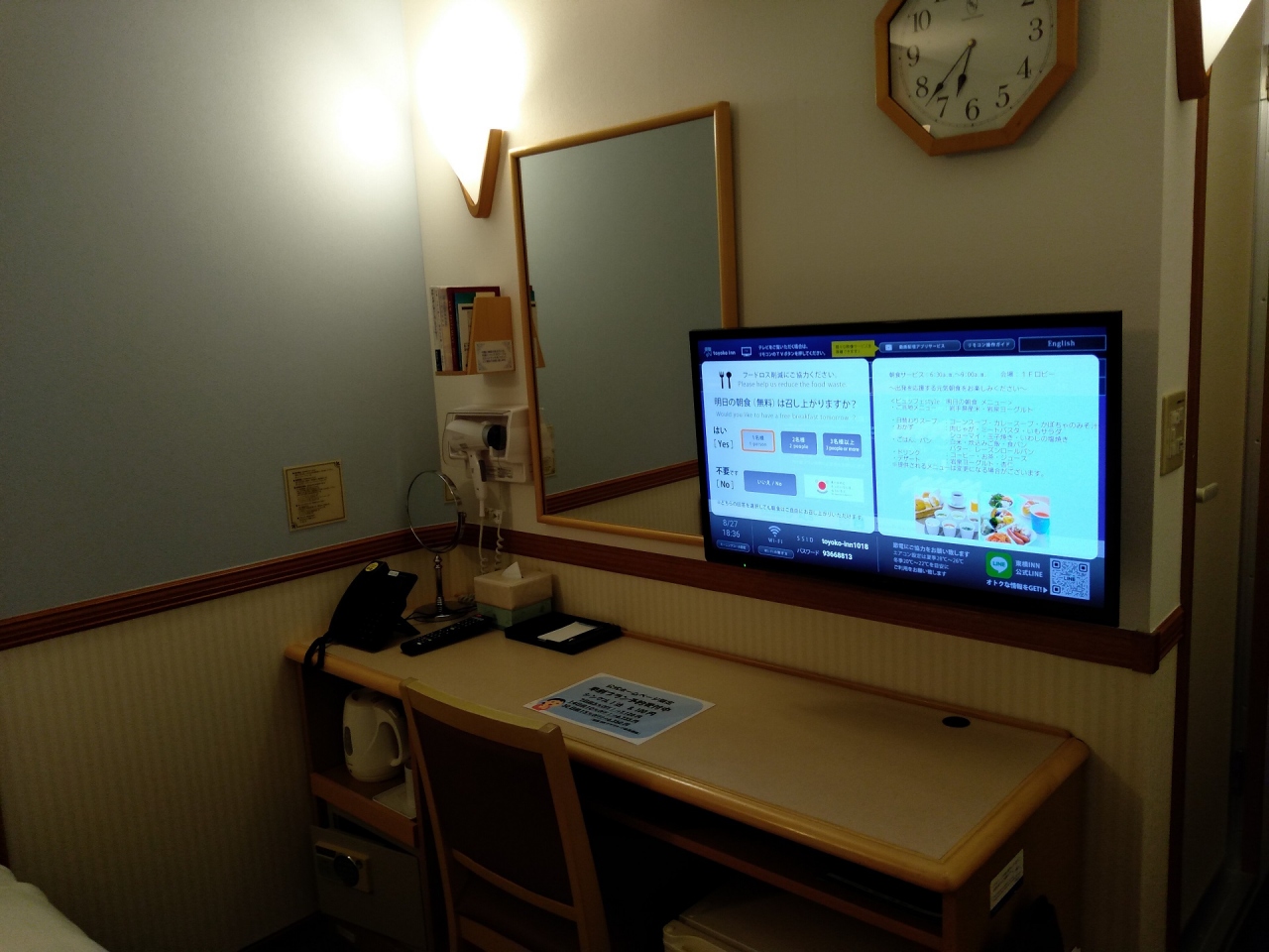 当初は岩手県北上市にあるアパホテルに宿泊していたが空調故障のためにアパホテルが振り替えてくれた東横インに宿泊する。ネットで話題になった駐車場は広く車は停めやすかった。そして平日限定ながら無料で振る舞われた夕飯のカレーライスは夏野菜ベースで美味しく大満足♪。部屋も広くて快適に利用することができた。アメニティは1階のフリースペースに用意されていて必要なものをテイクアウトするようになっている。