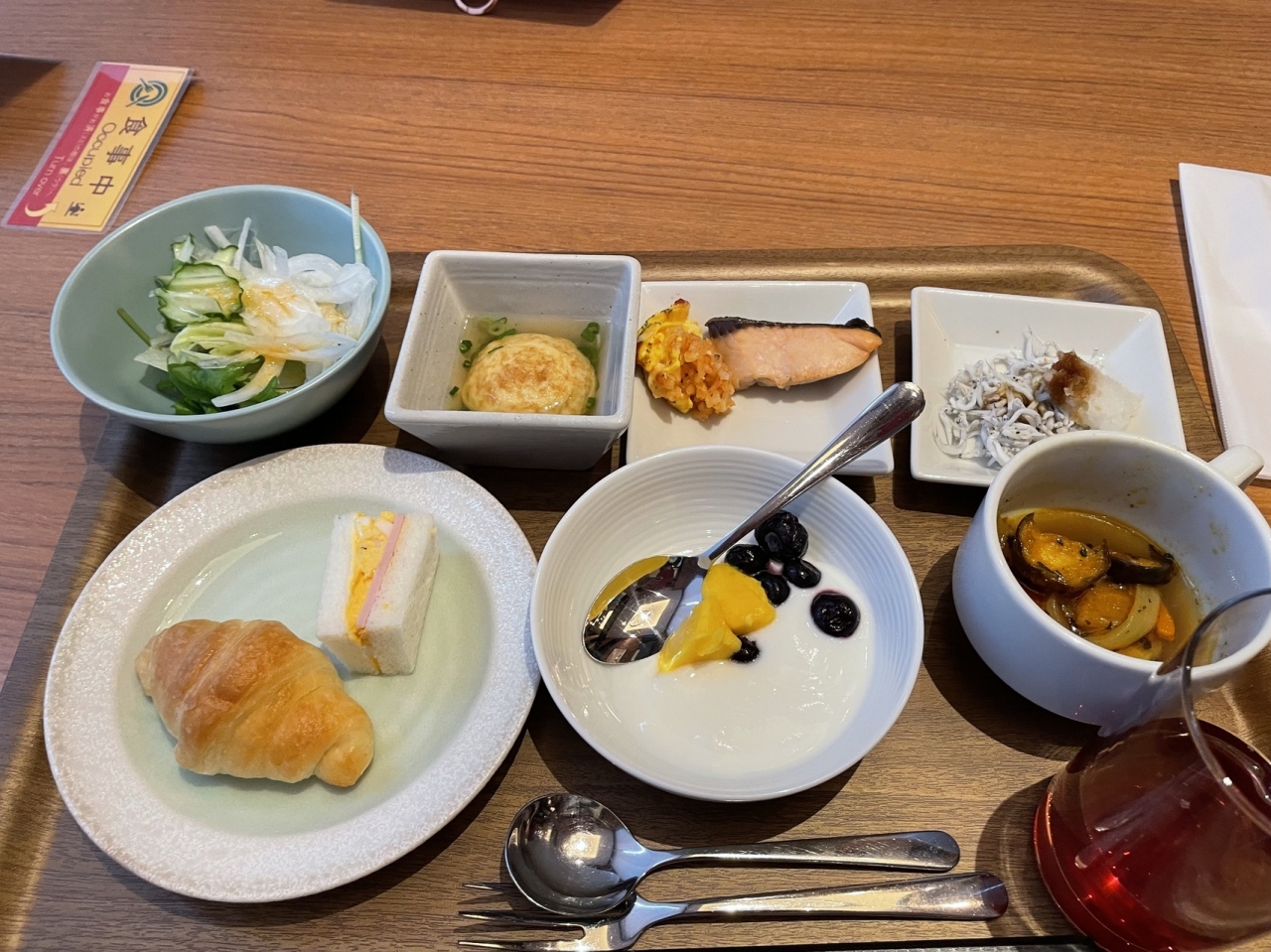 朝食は地元の明石焼きや揖保乃糸、地元のベーカリーなどを取り入れられて豪華では無いけど地元の物を頂けて満足できました。