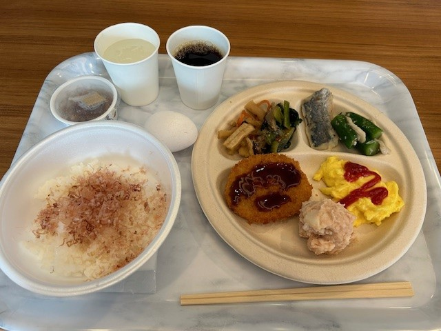 朝食はスタート時間(6:30)に行ったのですが、建設現場で働いていらっしゃると思われるお客様でほぼ満席でした(こんなに朝早くから頭が下がります…!)