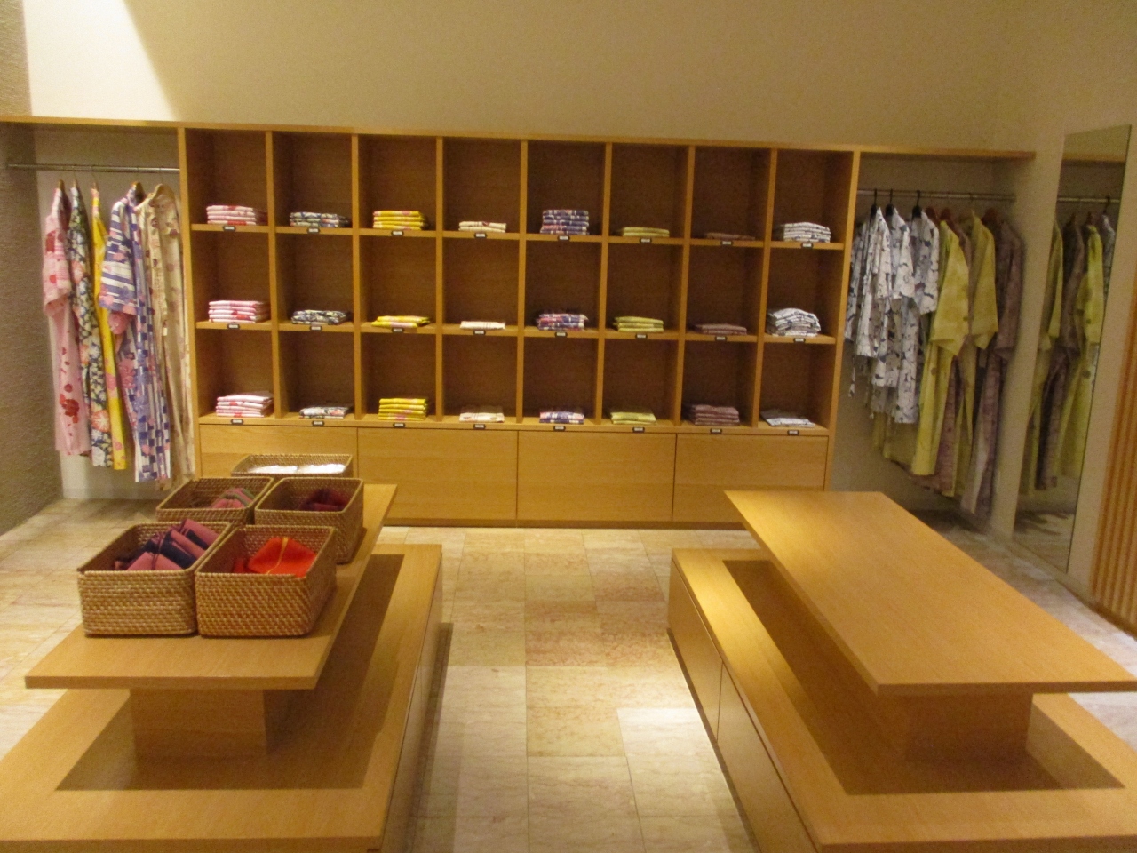 SHIRAHAMA KEY TERRACE HOTEL SEAMOREの1階に館内着や浴衣が置いてありました。ここまでは普通のホテルと同じですが、統一された色、デザインではなく、カラフルな色で選べる浴衣でした。これだけでテンションが上がりました。必要な小物も大きい棚にありました。