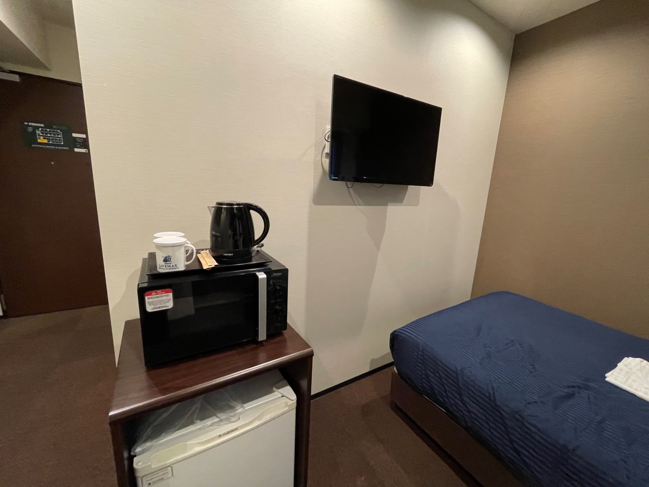 ダブルルームにひとりで宿泊し、エレベーター横の部屋でしたがエレベーター稼動時の音は感じませんでした。部屋は広く掃除も行き届き快適、レンジがあるので部屋食の人には便利です。また、毎朝コーヒーを飲む私は必ずドリップコーヒーを持参するのですが、部屋に大きめのマグカップがあるのがありがたかったです。