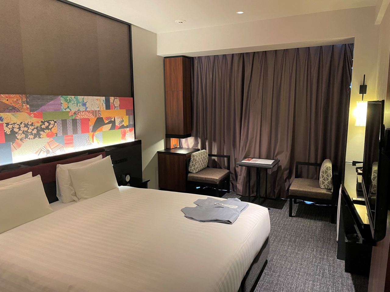 お部屋は加賀友禅を採用したデザインで安らげます。