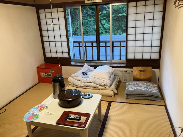 以前から湯治というものがしたかったので2泊ですがプチ湯治を味わうことができました。自炊設備もある本格的な湯治宿です。布団から何から持ち込み可能ですが、布団や浴衣がセットになっているプランにしました。4畳半の小さな和室です。鍵がかからないので貴重品はフロントに預けました。風呂は3種類ありましたが、やはり露天風呂が気持ちよかったです。部屋にトイレがなく、共用のトイレの数が少なくて、朝は渋滞していたのが困りました。