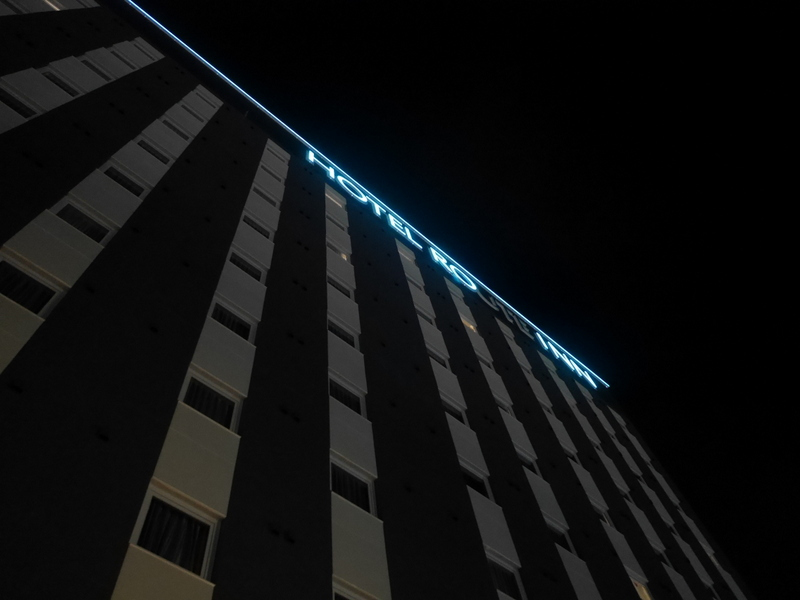 ホテル前に広い駐車場があり、大型バイク駐車もストレスない。