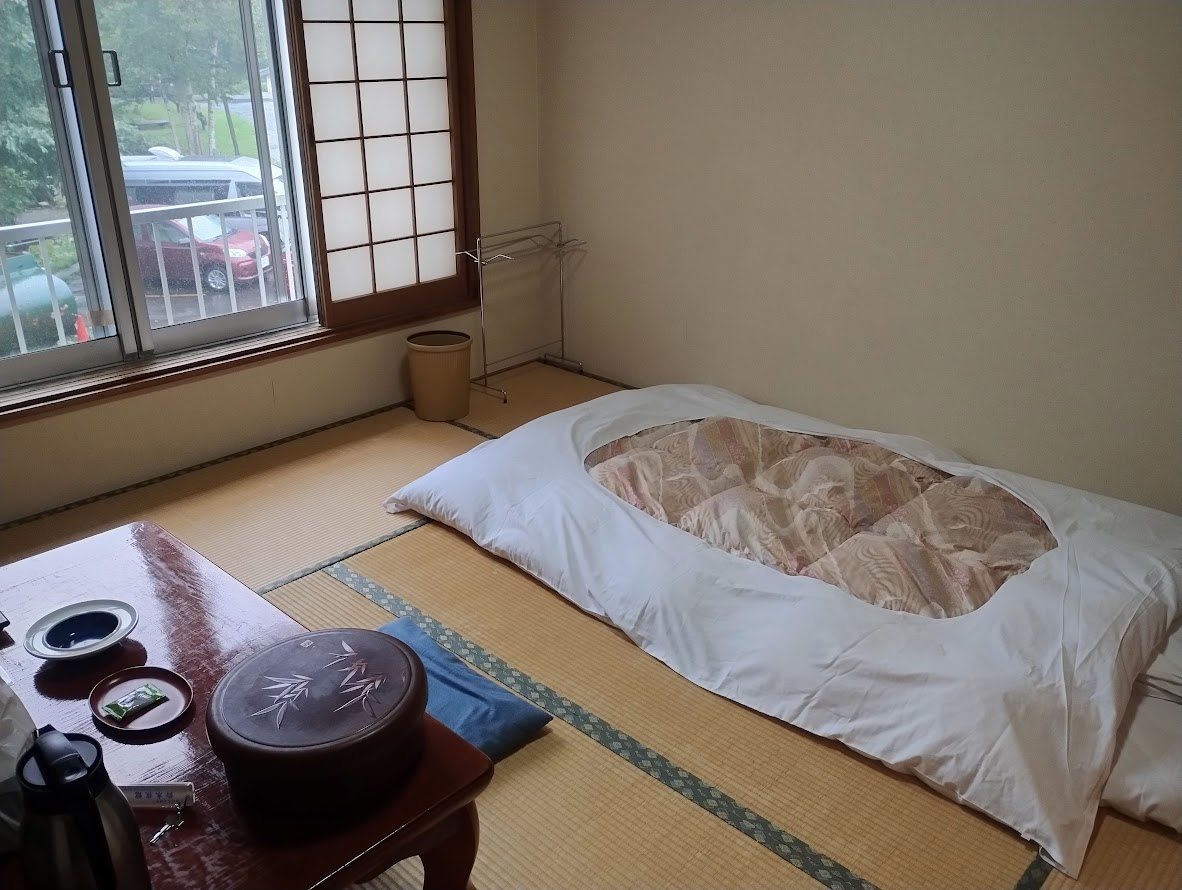 登別温泉の奥にあるカルルス温泉街にある古い旅館で、今どき2食付き個室で8550円とコスパ抜群です。トイレ共同だが清潔でウォシュレット対応、温泉は源泉かけ流し。登別の近くながら、泉質は意外に単純泉。24時間入浴できるのがいいですね。