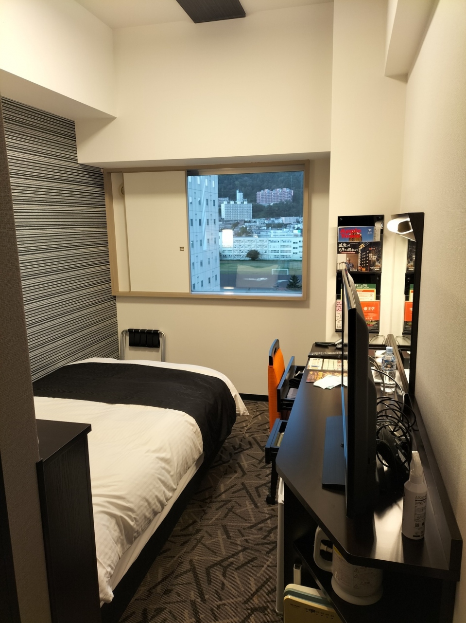 駐車場無料で、札幌中心部では無いので周辺に飲食店は少なめです。ホテル内に居酒屋があり、ネット上で混雑時のクレームが多いようですが混雑している居酒屋へのクレームはどこも同じだと思います。徒歩10分圏内にはスーパーマーケットが3件あるので不便は無いと思います。