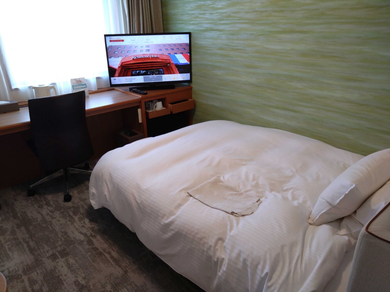 お部屋は、リッチモンド品質なので問題なしです。ベッドの寝心地も良く、部屋が明るいのも良いです。