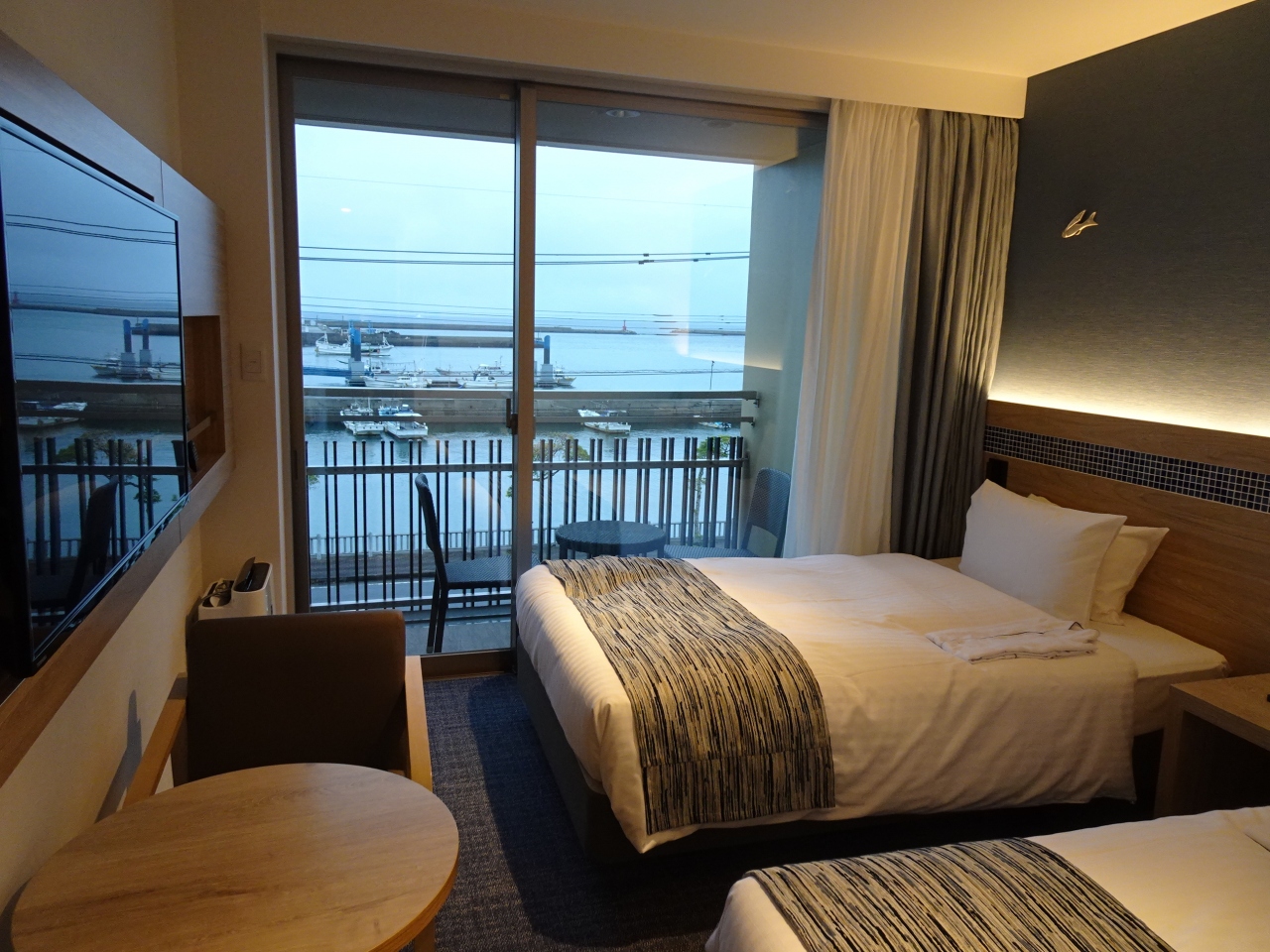 阪急交通社の団体ツアーで1泊利用。部屋は広くは無かったけど、コンセントの位置や数は機能的でした。ユニットバスもビジネスホテルサイズで狭めでした。気になったのはそのくらいで、全体的に新しく清潔で内装もお洒落で気持よく滞在できました。朝食に利用したレストランは窓が大きく明るくて海辺のカフェという雰囲気でヨカッタです。メニューも多彩で美味しかった。
