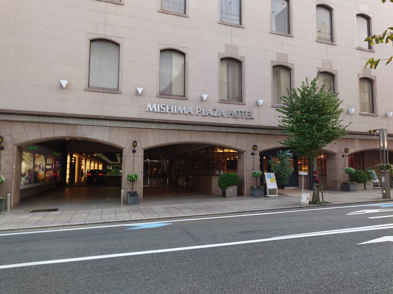 ホテル入口にはクラシックカーが駐車されており、結婚式などに使われているのでしょうか?結婚式場や各種イベントホールなども備えたホテルです。三嶋大社から東に歩いて10分もかからず、旧東海道?に面した三島市の中心街にあり近隣には飲食店や商店が並び立地もよいです。イベント等の開催時は賑やかでわくわくします。