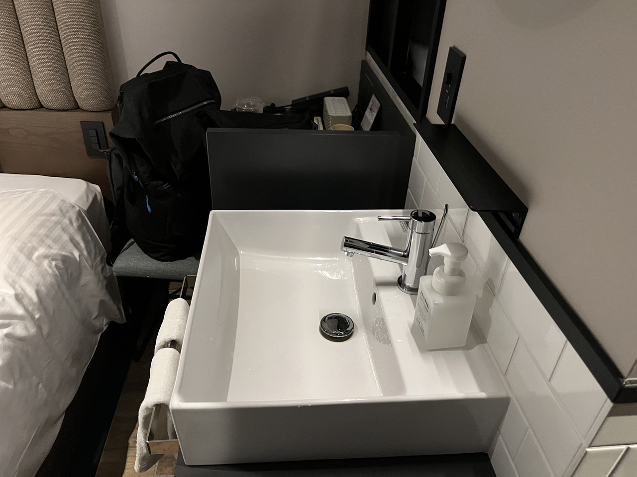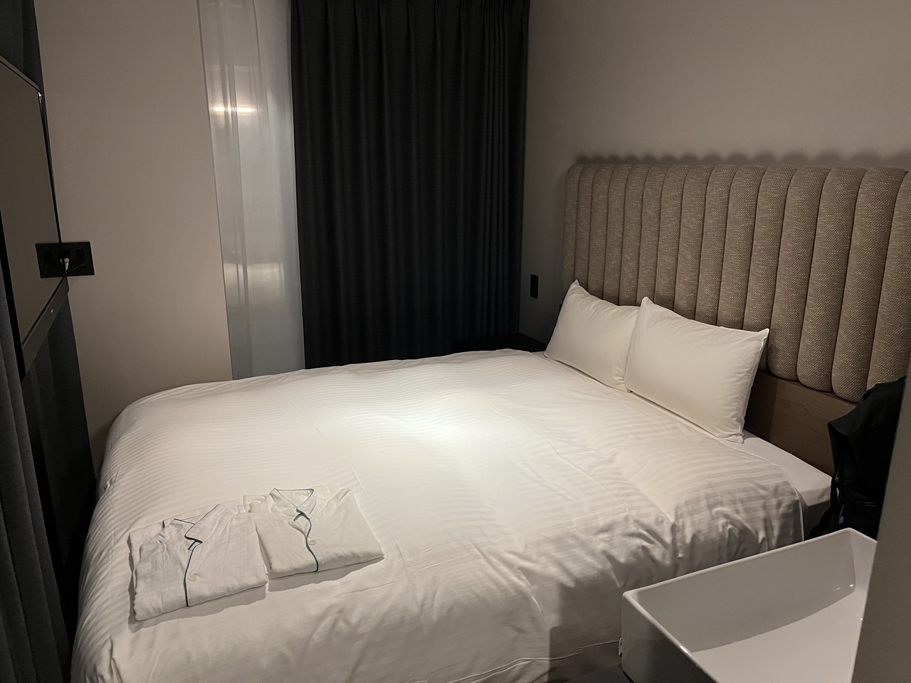 博多駅から徒歩7分程度のビジネスホテル。繁華街を抜け、ホテル付近は割と落ち着いた雰囲気です。ホテル自体は新しく綺麗ですが、ダブルベッドの部屋はベッド以外に歩けるスペースはほぼなく、寝るだけの部屋でした。ただビジネスホテルの機能は全て備わっているので、必要十分な宿でした。