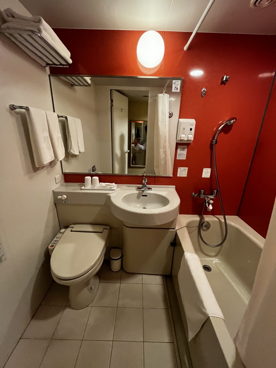 元チサンインなので広いが、サーモ付いてない水栓だから温度調整が難