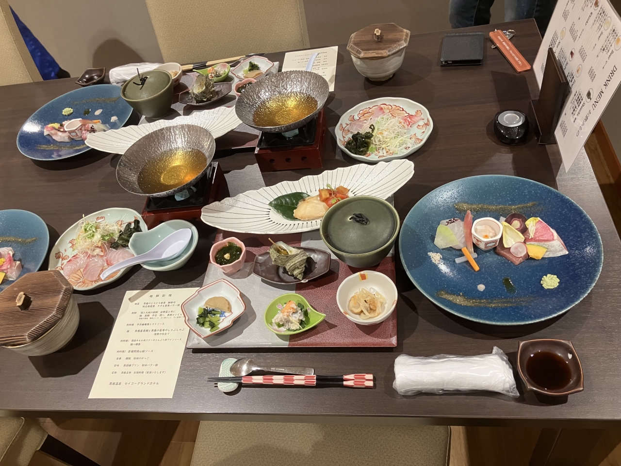 ホテルは正面からは平屋のようですが5階建で別館もあり、部屋も広く料理も豪華な上男鹿の名物料理「石焼料理」の実演がありました。テレビなどで放映され有名だそうです。桶の中に800゜に熱した石を入れて鯛を煮る料理ですが実演した後料理が配られました。風呂は内風呂も露天風呂にも入ましたが疲れが取れてよかったです。