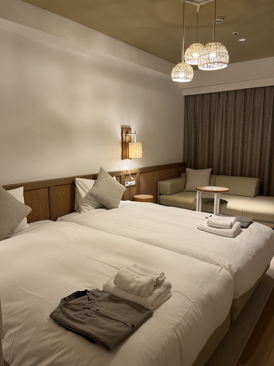 那覇初の早朝便を利用する予定があったため、ゆいレール駅から近いホテルを選びました。新しいため部屋も設備も綺麗でした。広々とした大浴場もあり、ゆっくりと疲れを癒すことができました。