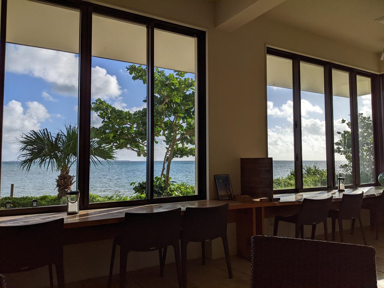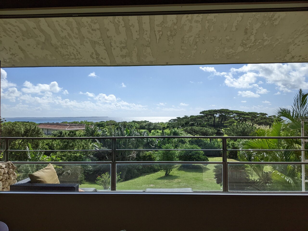 お部屋は大きな窓が特徴的で、敷地内に広がる自然と海が見えます。この窓からの朝や夕方の景色はまるで絵のようで素晴らしく綺麗でした。そこまで大きくないですがテラスもあり、夕方はテラスの椅子で過ごすのが気持ち良かったです。