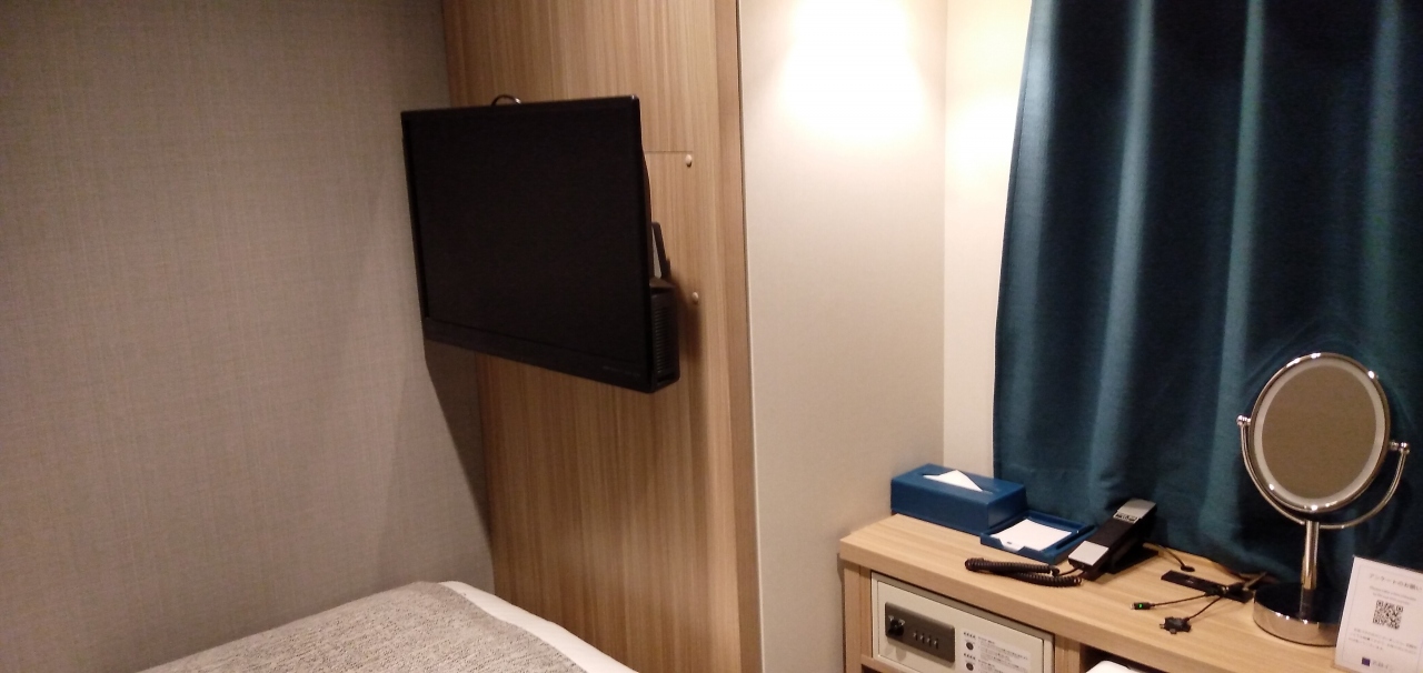 地図で見るより新大阪駅構内に入るのは近く感じます、ただ新幹線改札までは構内を結構歩く感じです。1階にローソンがあります。部屋は狭いけどきれい。充電器も備え付けがあります。シャワーカーテンが斜めになるので風呂が少し広く感じます。水圧は弱いです。