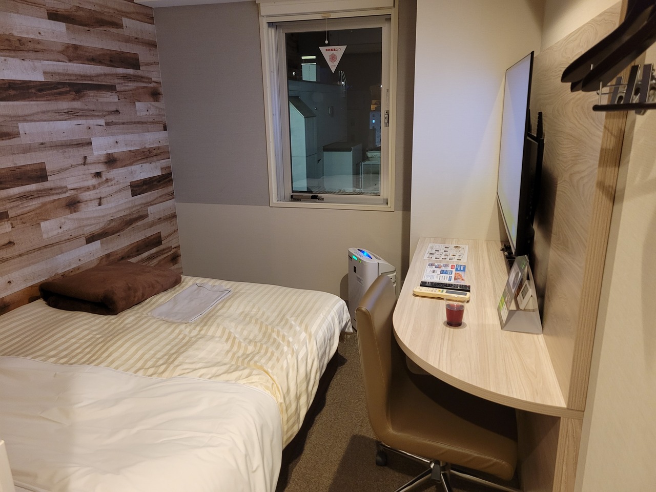 釧路駅の近くにあって木目調のインテリアでやわらかな雰囲気の部屋でした。ウェルカムバーではワインや焼酎、果実酒などがあってオリジナルカクテルがつくれて楽しめました。男女交代制の大浴場は広くないので、混雑しやすくてないよりはいいかなという感じです。朝食バイキングは会場が広めでザンギやほうれん草ベーコン、親子煮がおいしかったです。