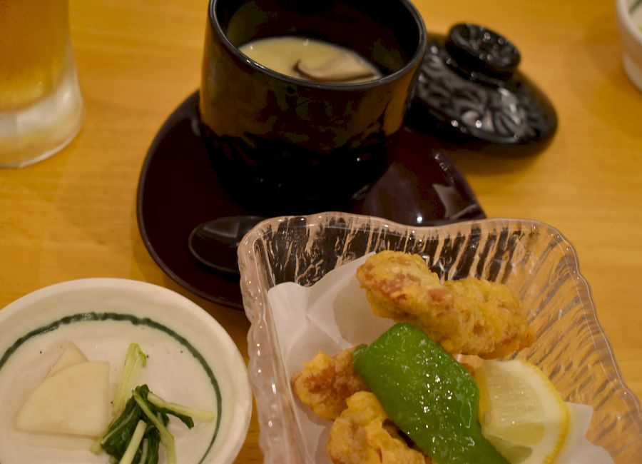 食事は ご飯とお澄ましはセルフで好きな量をとって来る形式。