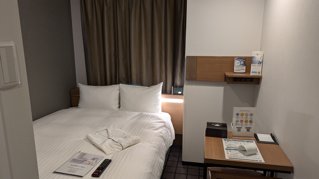 マラソン前日で値段が12000円くらい。2階で窓を開けると隣のビルから丸見え。アメニティ、お茶などは、自由に選べるのは良かった。自動チェックイン機で中国人がガンガン横入り、きちんと並ばせてほしかった。駅近くなのは良い。